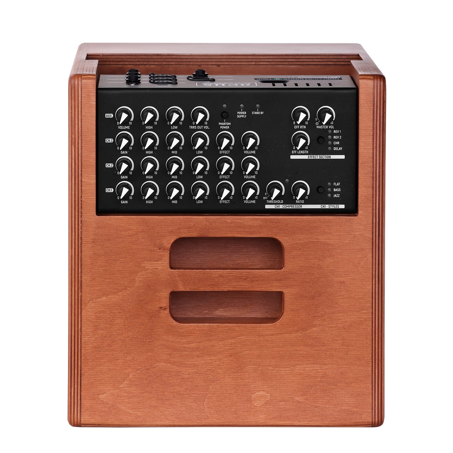 - Flat – Uniwersalny tryb dla akustycznych i klasycznych instrumentów, oferujący neutralne brzmienie. W tej konfiguracji kanał 1 odpowiada charakterystyką kanałom 2 i 3.