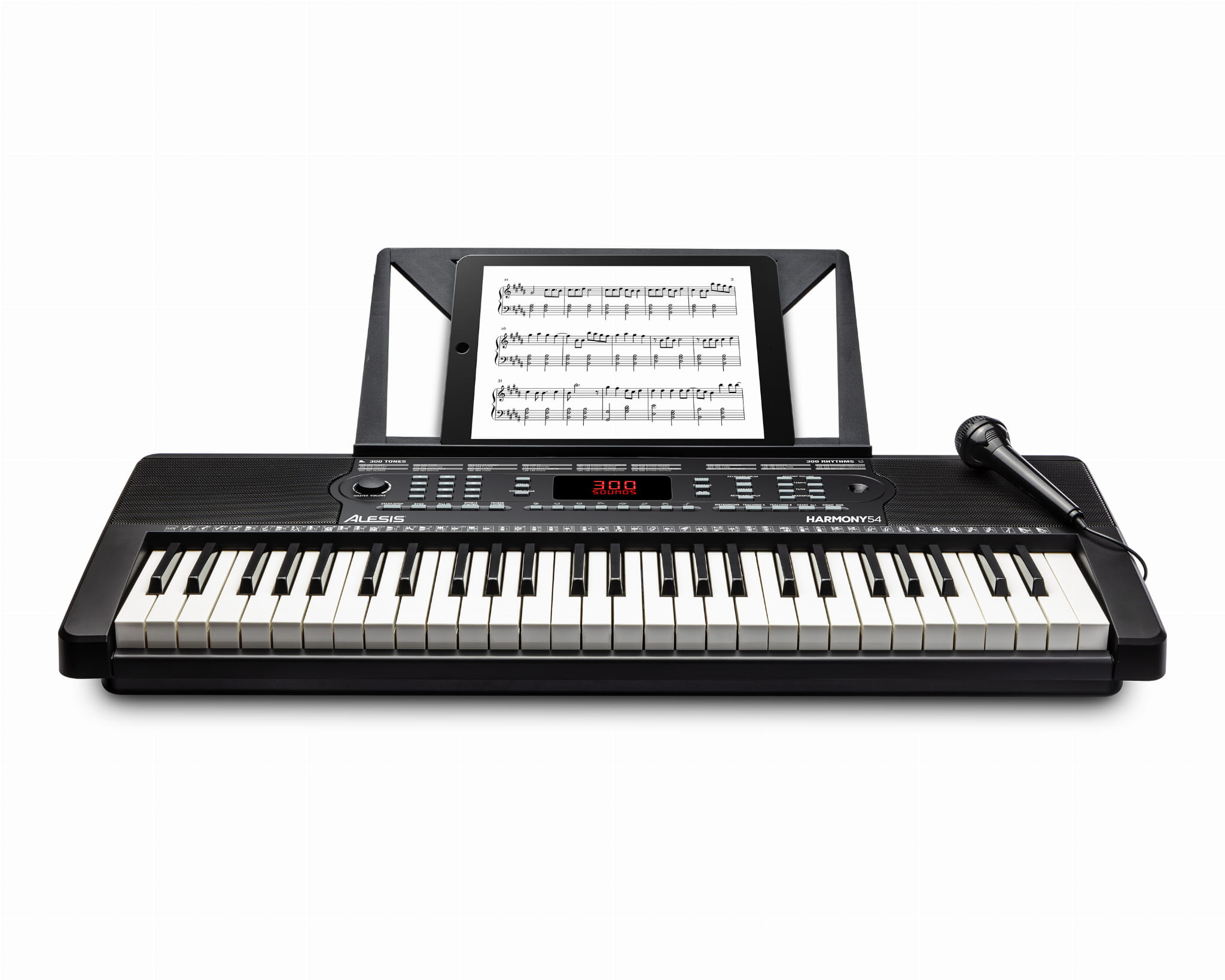 300 wgranych w Harmony 54 rytmów pomoże Ci w tworzeniu własnych kompozycji. Harmony 54 pozwala na nagrywanie twoich występów, a dołączony do zestawu mikrofon umożliwia śpiewanie podczas gry.