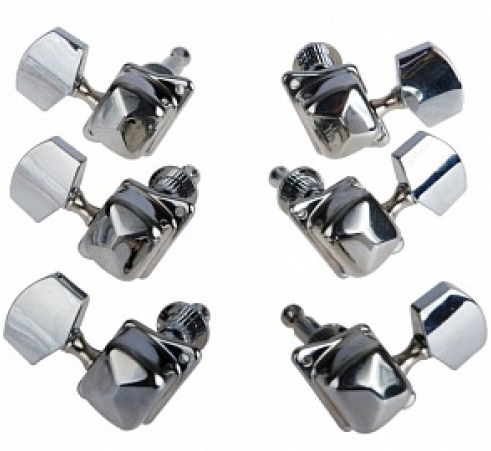 Zestaw sześciu kluczy wraz z wkrętami, tulejkami oraz podkładkami. Bardzo szybki i prosty montaż. Standardowe wymiary sprawiają, że, pasują do wszystkich rodzajów gitar. Bardzo trwały mechanizm i solidne wykończenie.