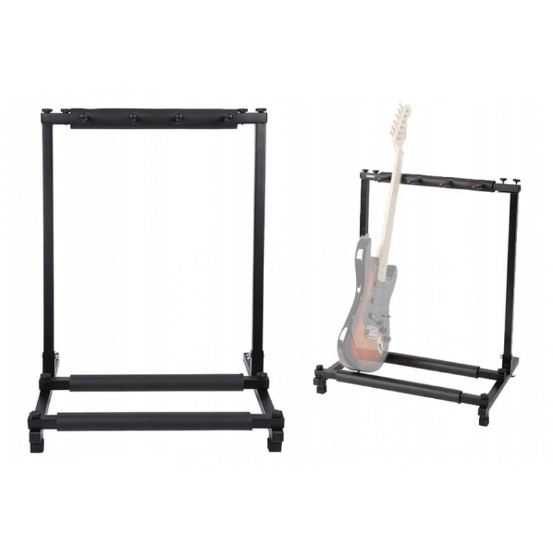 Wygodny i mocny stojak na 3 gitary, wykonany z metalu w kolorze czarnym. Posiada stabilną konstrukcję a dodatkowo posiada ramiona pokryte pianką co chroni gitarę przed zarysowaniem. Konstrukcja stojaka zapewnia komfortowe użytkowanie, natomiast podstawa gwarantuje stabilność całej konstrukcji, dodatkowo zakończona jest antypoślizgowymi nasadkami, chroniącymi przed ślizganiem się a podłogę przed zarysowaniami. Wykonany z trwałych i estetycznych materiałów, świetnie sprawdzi się zarówno w domu jak i jako element ekspozycji.