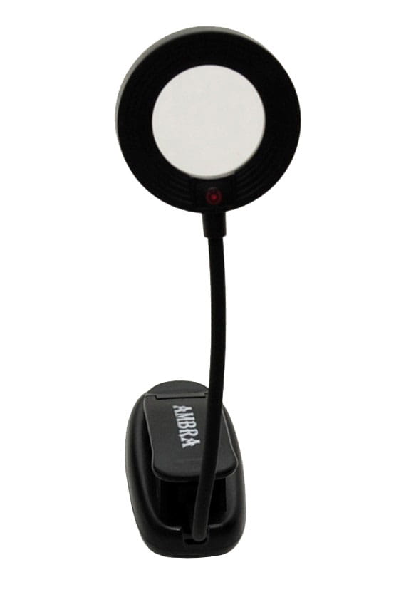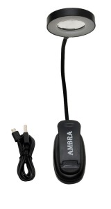 Praktyczna lampka z uchwytem na klips - idealna do oświetlenia pulpitu nutowego. Głowica lampki jest okrągła i można ją ułatwiać pod najwygodniejszym dla siebie kątem. Zamontowana została na długiej gęsiej szyi pozwalającej na skierowanie światła dokładnie w miejsce, które chcemy oświetlić. Uchwyt na klips idealnie sprawdzi się tam, gdzie nie ma miejsca na swobodne postawienie lampki. Można przymocować do każdej mównicy. Świetnie też się sprawdzi jako doświetlenie półek czy sztalug malarskich. Lampka posiada 3 tryby jasności oraz lupę: ciepły, zimny, mieszany.