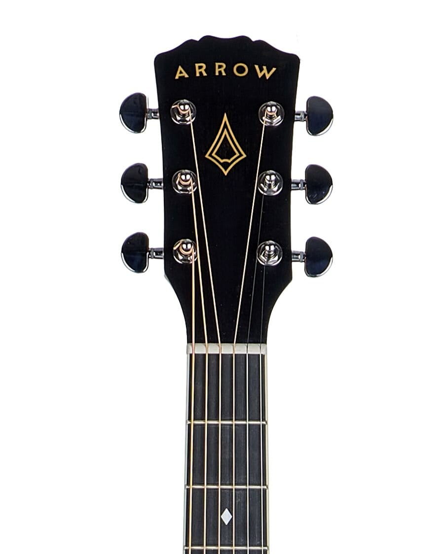 Gitara Arrow Gold A SB Sunburst posiada kształt pudła typu Auditorium. Ten popularny kształt zapewnia zrównoważone brzmienie oraz komfort gry, co czyni ją idealną zarówno do grania akordów, jak i solówek. Korpus Auditorium oferuje dynamiczny, pełen i ciepły dźwięk, który doskonale sprawdza się w różnych stylach muzycznych.