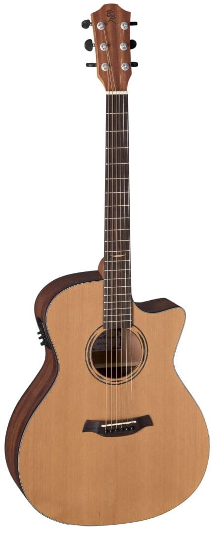 Lity cedr kanadyjski zastosowany na topie gitary zapewnia bogate brzmienie i doskonałą projekcję dźwięku. Jest to materiał ceniony przez lutników za swoje właściwości akustyczne, które nadają instrumentowi ciepły i pełny ton.