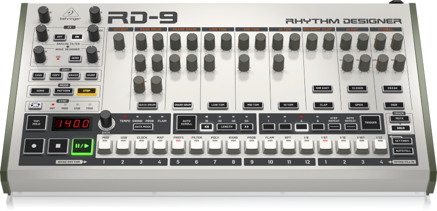 Klasyczna, analogowo-cyfrowa maszyna perkusyjna z 11 brzmieniami perkusyjnymi, 64-krokowym sekwencerem, Wave Designer i filtrem Dual-Mode.