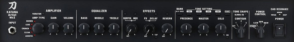 Katana-Artist MkII posiada te same kluczowe aktualizacje zaprezentowane we wzmacniaczach Katana MkII. Warianty są dostępne dla pięciu symulacji, dostarczając 10 różnych opcji tonalnych do wyboru. Pięć kategorii efektów jednoczesnych sprawia, że masz moc kształtowania dźwięku wprost ze swojego wzmacniacza. Podłączenie do BOSS Tone Studio pozwala na personalizację sekcji z ponad 60 różnymi typami efektów, na zmianę kolejności i wiele więcej.