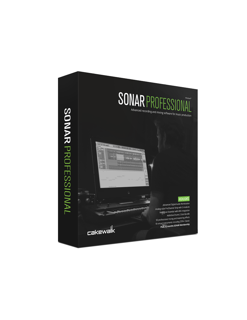 SONAR oferuje: zaawansowaną technologię i przyjemny interfejs pobudzający inspirację. Napędzany przez ponad 25 lat w nieustające dążenia do innowacji, SONAR stanowi nowoczesne studio nagrań. SONAR Professional zawiera zaawanowane funkcje z pełnym zestawem profesjonalnych efektów i instrumentów wirtualnych, w tym także ProChannel Console Strip, Melodyne Essential with ARA integration i Addictive Drums 2 Solo Edition. Dzięki wielokrotnie nagradzanemu interfejsowi użytkownika Skylight możemy kompleksowo wykonać edycję, miks i mastering, by stworzyć swoje własne arcydzydzieło.