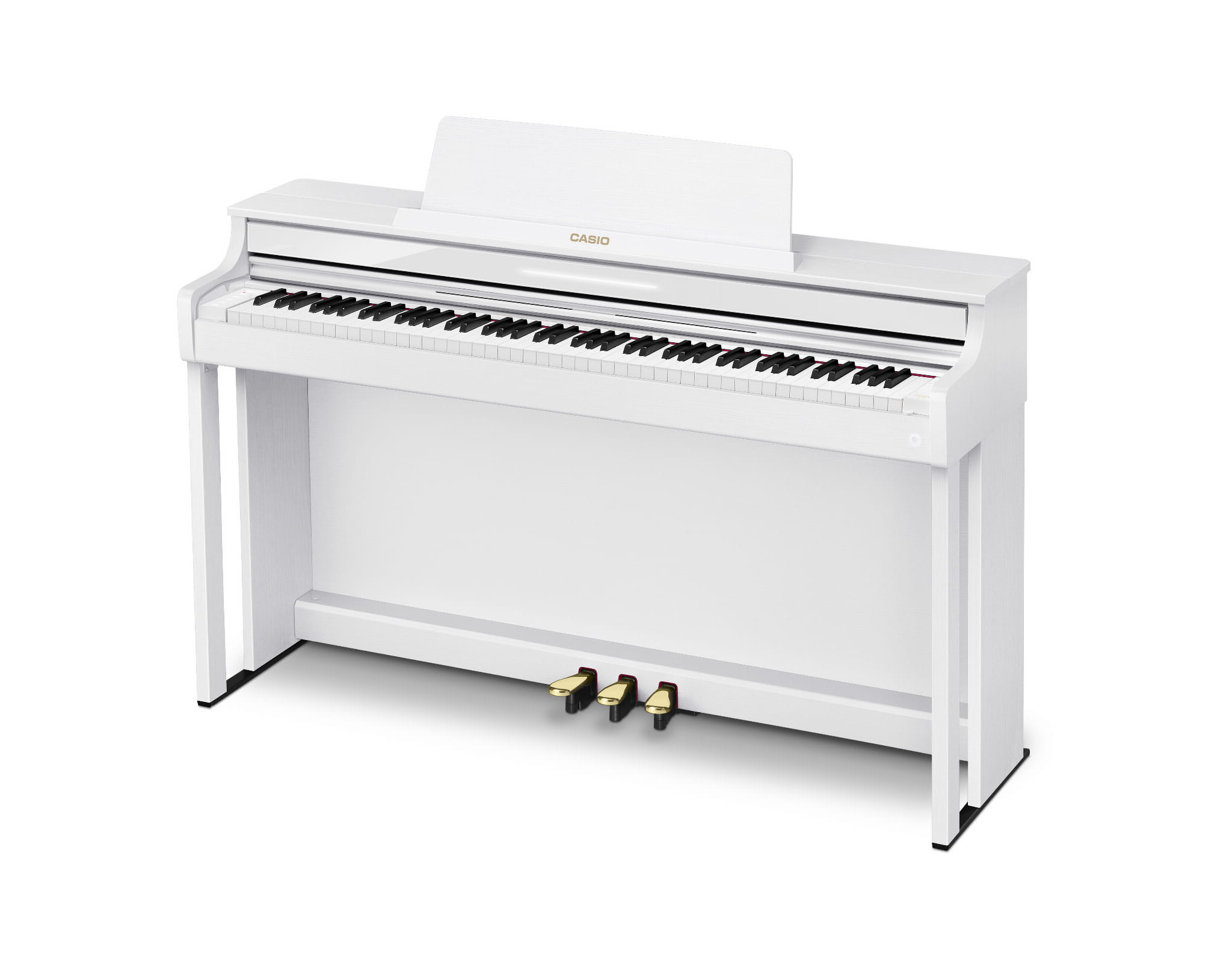 CASIO AP-550 to innowacyjne pianino cyfrowe, które harmonijnie łączy klasykę fortepianu akustycznego z nowoczesną technologią. Jego niekwestionowanym atutem jest dokładna symulacja renomowanego fortepianu z Hamburga, oferująca niezwykle bogate, szczegółowe i wszechstronne brzmienie. Model ten zawiera także 26 różnorodnych brzmień, zaawansowane efekty dźwiękowe i wizualne, podkreślone przez potężny system czterech głośników. CASIO AP-550 to doskonały wybór dla miłośników pianina, którzy poszukują doskonałej jakości dźwięku, nowoczesnego designu i wyjątkowej wygody podczas gry.