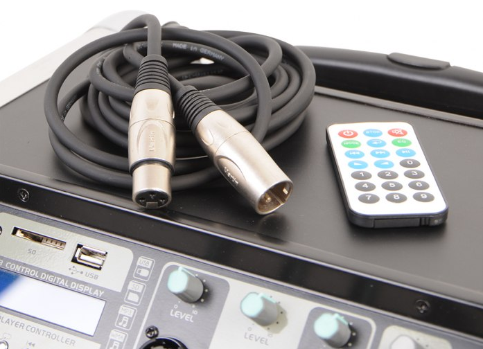 W komplecie pilot zdalnego sterowania oraz mikrofon wraz z przewodem