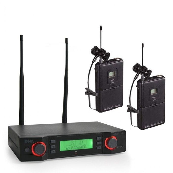 Wysokiej jakości bezprzewodowy system mikrofonowy oparty na technologii cyfrowej, przeznaczony do zbierania dźwięków bezpośrednio z instrumentów pozbawionych możliwości przesyłania sygnałów za pośrednictwem przewodu. Zestaw składa się z odbiornika UHF, dwóch nadajników przypaskowych (tzw. „bodypacków” lub „beltpacków”) oraz dwóch mikrofonów z klipsem, które można przyczepić np. do saksofonu, akordeonu lub innego typu instrumentu. Set idealnie sprawdza się podczas niewielkich koncertów i występów na żywo, a także na weselach i podczas różnego typu eventów z użyciem instrumentów akustycznych.