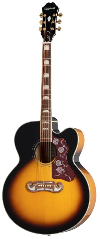 Epiphone J-200 Studio EC oddaje hołd Królowi Flattopów - klasycznemu Gibsonowi™ SJ-200. Ten zainspirowany przez Gibsona Epiphone posiada korpus Super Jumbo z wcięciem cutaway, wyselekcjonowany klon z tyłu i po bokach, lity świerkowy top, klonowy gryf o profilu SlimTaper™ D, podstrunnica twarda szyjka klonowa z profilem SlimTaper ™ D, podstrunnica pau ferro, 20 progów medium jumbo i stylowe inkrustacje z perłowymi koronami. Mostek w legendarnym kształcie Moustache™, a maskownica posiada kultową grafikę J-200 ™. Wyposażony w Przetwornik Fishman® Sonicore ™ montowany pod mostkiem i przedwzmacniacz Presys™ z wbudowanym tunerem.