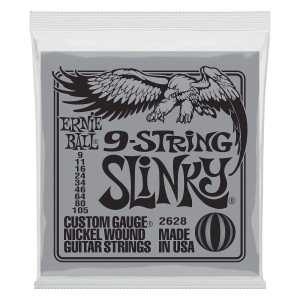 Zestaw 9 strun do gitary elektrycznej z serii Slinky Nickel.