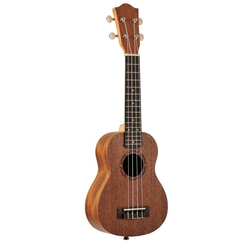 Rozmiar 21 cali sprawia, że jest to klasyczne ukulele sopranowe, idealne zarówno dla dzieci, początkujących, jak i zaawansowanych graczy. Wszystkie elementy korpusu, w tym top oraz boki i tył, wykonane są z drewna sapele. Drewno to jest popularne w produkcji instrumentów muzycznych ze względu na swoje ciepłe i głębokie brzmienie, co nadaje ukulele bogaty i pełny dźwięk.