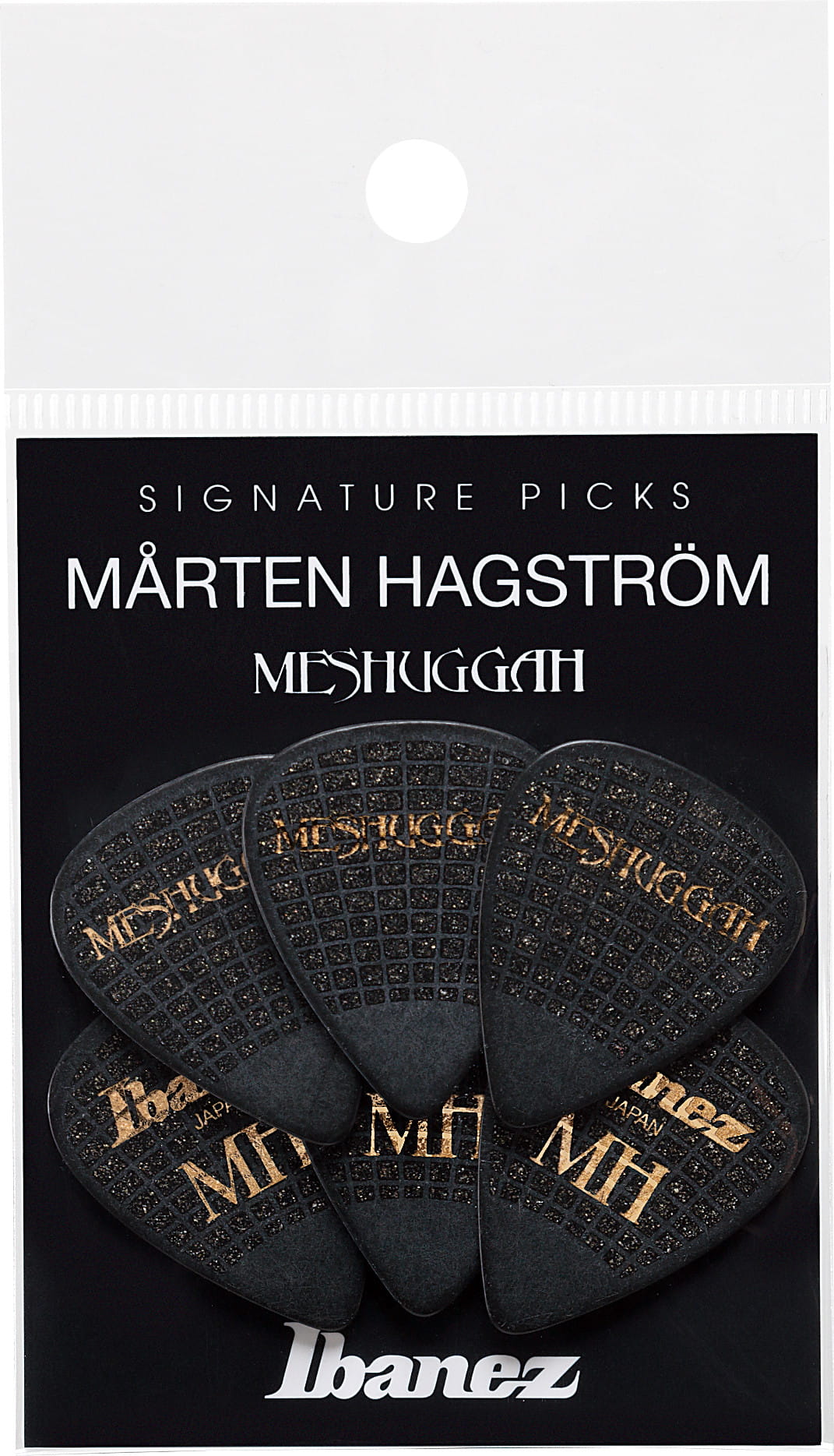 Zestaw kostek gitarowych. Kostki sygnowane przez Mårtena Hagströma zostały specjalnie zaprojektowane, aby uwzględnić jego przełomowe podejście do brzmienia metalowej gitary.