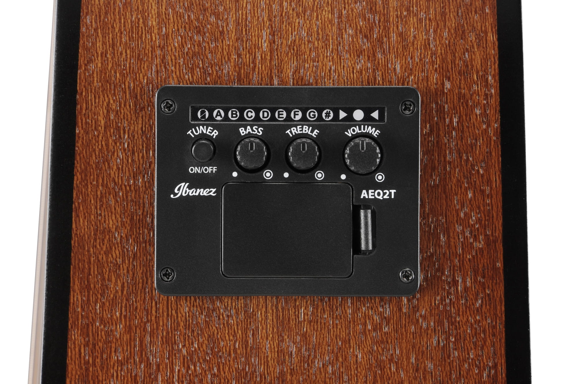 Jednym z największych atutów tej gitary jest wbudowany pickup Ibanez Undersaddle oraz preamp Ibanez AEQ-TP2 z tunerem. Ta zaawansowana elektronika umożliwia podłączenie gitary do systemu nagłośnienia, co czyni ją idealnym wyborem na występy na żywo oraz nagrania studyjne. Preamp z tunerem zapewnia łatwe i szybkie strojenie instrumentu, co jest niezwykle wygodne podczas koncertów.