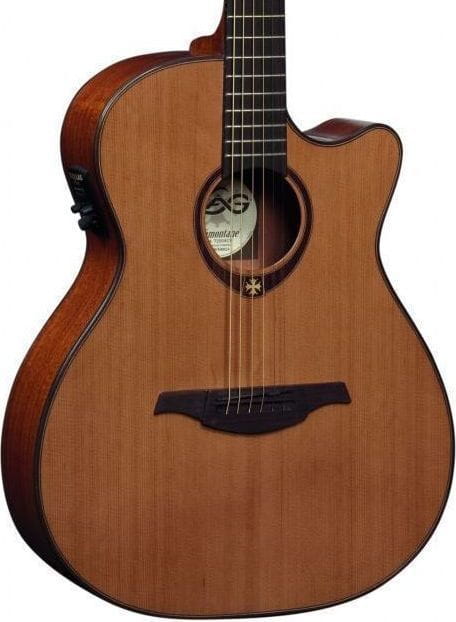 Seria T200 oferuje gitary o eleganckim, satynowym wykończeniu. Lity czerwony cedr płyty wierzchniej jest bardzo precyzyjnie dopasowany do mahoniowych boków i tyłu, połączony palisandrowym i klonowym bindingiem. Rezultatem takiego połączenia jest zrównoważone, ale i dynamiczne brzmienie instrumentów tej serii. Lag T200ACE to elektroakustyczna gitara posiadająca obszerne pudło rezonansowe typu Auditorium z wycięciem 'cutaway' ułatwiającym dostęp do wyższych progów i elektronikę StudioLâg Plus z przetwornikiem Nanoflex™.
