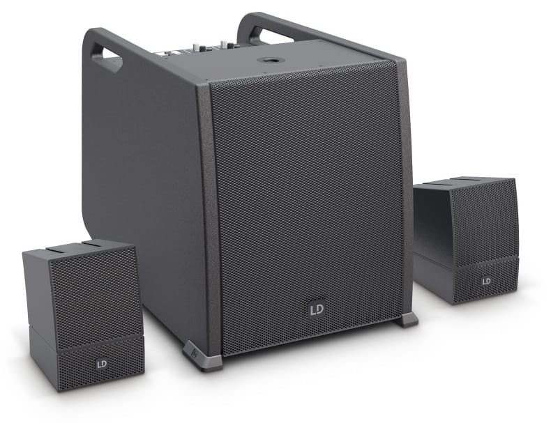 Oba głośniki satelitarne są obsługiwane za pomocą adaptera SmartLink®. Elementy o wymiarach wynoszących jedynie 12 x 12 x 12 cm wyposażone zostały w autorską technologię WaveAhead® firmy LD Systems, a dodatkowy przetwornik 4” i trzy przetworniki 1” z apewniają spójne i bardzo dokładne odtwarzanie dźwięku, który charakteryzuje się dużą mocą i dynamiką.