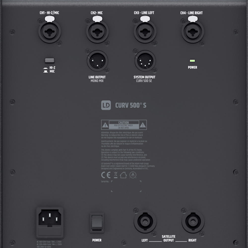 Podstawę systemu stanowi subwoofer 10” w obudowie bass reflex, posiadający wzmacniacz klasy D, limiter, ochronę przed zwarciem, przegrzaniem i przepięciem oraz mikser 4-kanałowy z 16 cyfrowymi ustawieniami wstępnymi efektów. Jest także wyposażony w z łącze Bluetooth®. Gniazda zgodne z Combo i speakON oferują wiele możliwości w zakresie złączy. Dodatkowo subwoofer posiada 4 cyfrowe ustawienia predefiniowane systemu, kołnierz gwintowy M20 i trzy ergonomiczne uchwyty.