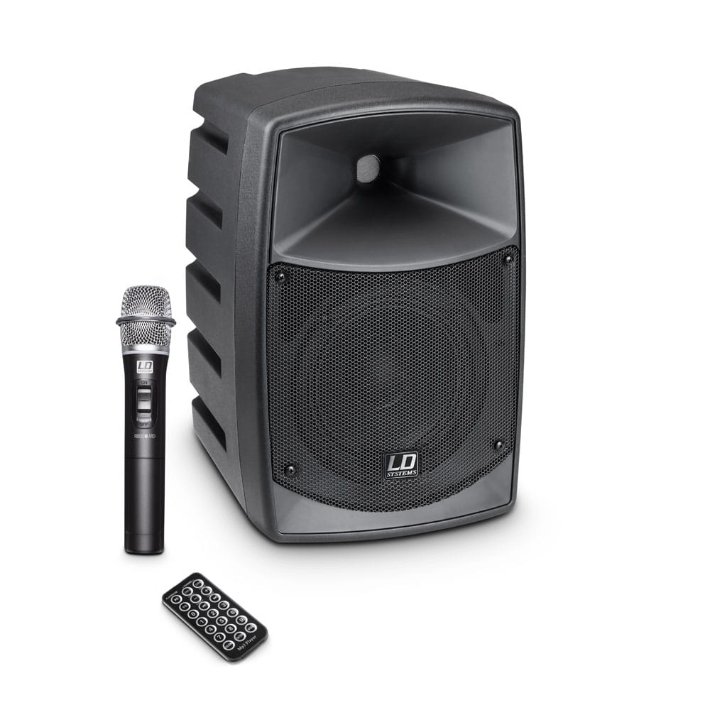 W zestawie mikrofon bezprzewodowy i pilot zdalnego sterowania na podczerwień