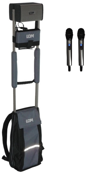 Mały, zasilany akumulatorem przenośny system nagłośnieniowy z zewnętrznym odbiornikiem mikrofonu bezprzewodowego - LDM D216, charakteryzujący się naturalnym, czytelnym brzmieniem dzięki zastosowaniu zestawu głośnikowego w skład którego wchodzą 4 głośniki neodymowe bardzo wysokiej jakości. Wbudowany odtwarzacz Mp3 z funkcją Bluetooth.
