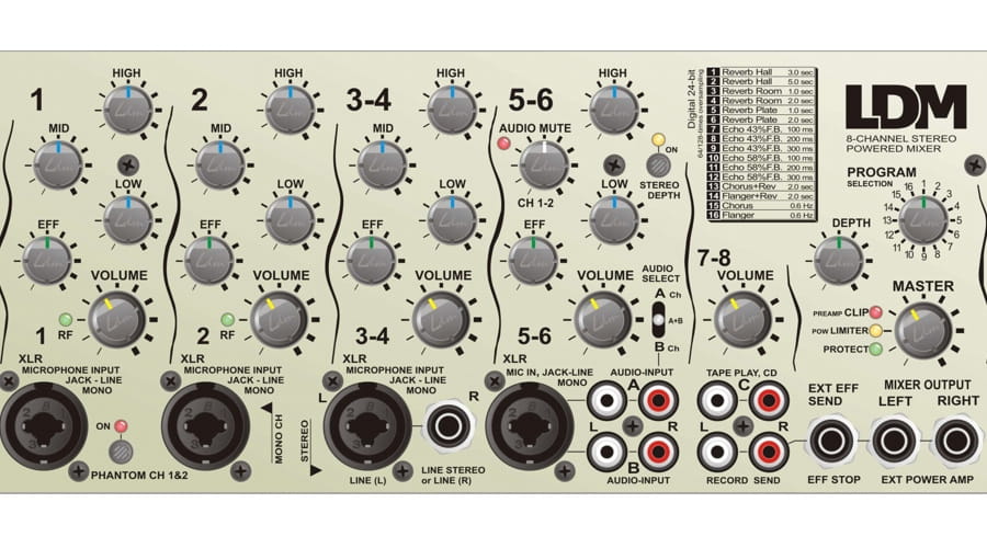 Sklep Muzyczny Demo poleca LDM SMX-408RX POWERMIKSER 2x200W 8 KANAŁÓW