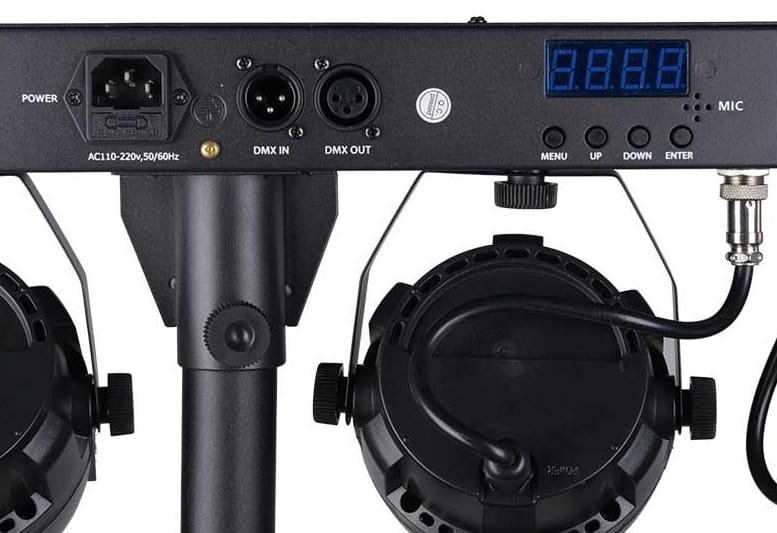 Źródło światła: 2x par 3x3W RGB + 2x derby 4x3W (RGBW)