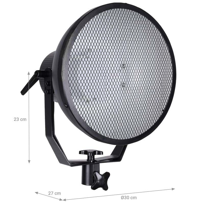 Jak przystało na reflektory sceniczne sprzed lat, utrzymany w stylowym klimacie Retro 300 posiada solidną, metalową obudowę z charakterystyczną siatką chroniącą źródło światła przed przypadkowym uszkodzeniem. Wytrzymały uchwyt montażowy pozwala na łatwe i pewne postawienie oświetlacza lub jego montaż na statywach, rampach i kratownicach oświetleniowych. Z tyłu znajduje się gniazdo zasilania powercon, wejście i wyjście DMX oraz wygodny panel sterowania.
