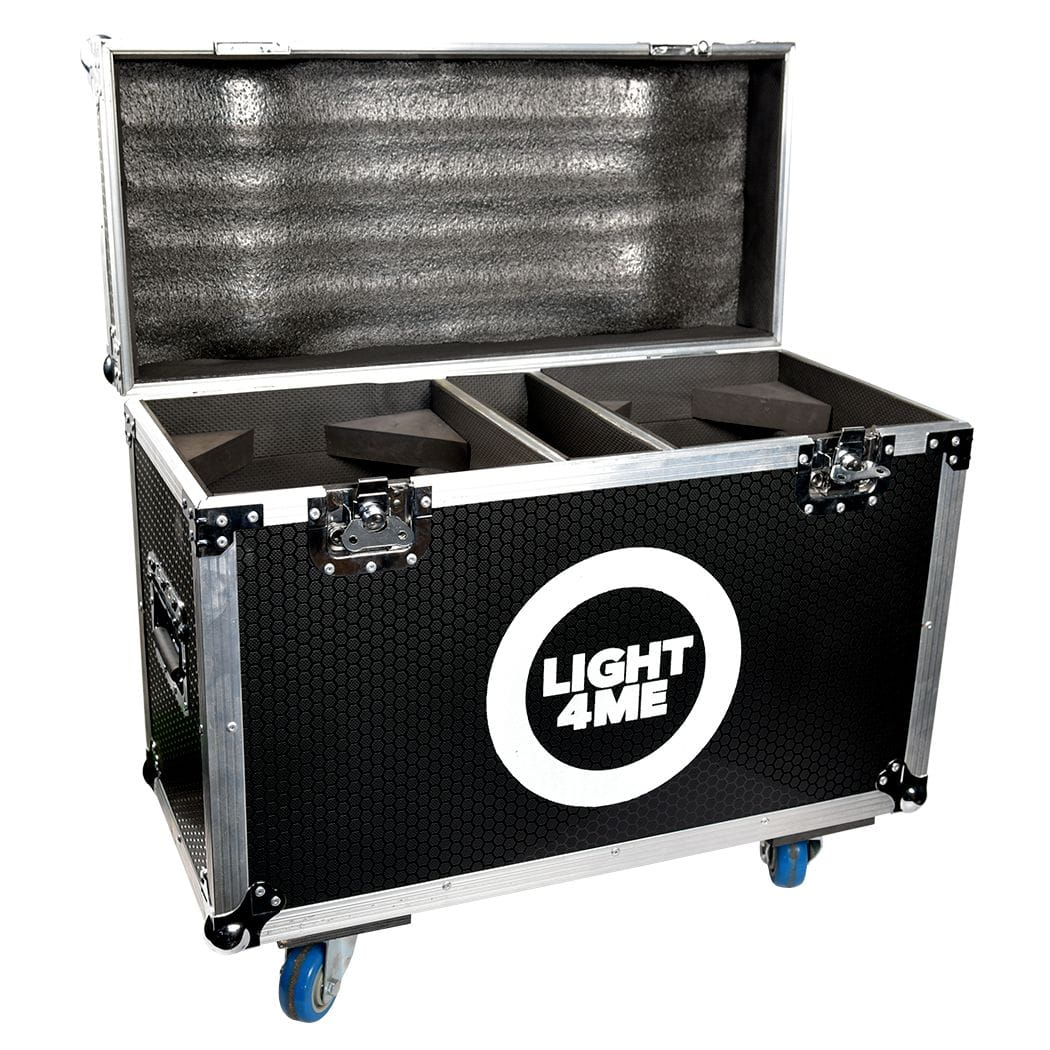 LIGHT4ME ROBO ZOOM WASH 740 CASE to skrzynia do przechowywania i transportu dwóch reflektorów Robo Zoom Wash 740, która z powodzeniem pomieści również inne oświetlenie sceniczne lub sprzęt estradowy o podobnych do tych reflektorów wymiarach. Kufer wykonany został z wytrzymałej, grubej sklejki pokrytej wodoodporną okleiną o strukturze plastra miodu. Jego krawędzie oraz narożniki zostały wzmocnione solidnymi okuciami. Case posiada cztery skrętne kółka (w tym dwa z blokadą) oraz po dwa uchwyty (rączki) po bokach, umożliwiające jego wygodne przenoszenie. Jednostronnie otwierana pokrywa zapewnia wygodny dostęp do przechowywanych urządzeń. We wnętrzu futerału znajdują się dwie oddzielne przegrody na reflektory oraz węższa komora na okablowanie lub inne akcesoria. Motylkowe zamknięcia sprawiają, że pojemnik jest bardzo dobrze zabezpieczony przed przypadkowym otwarciem.