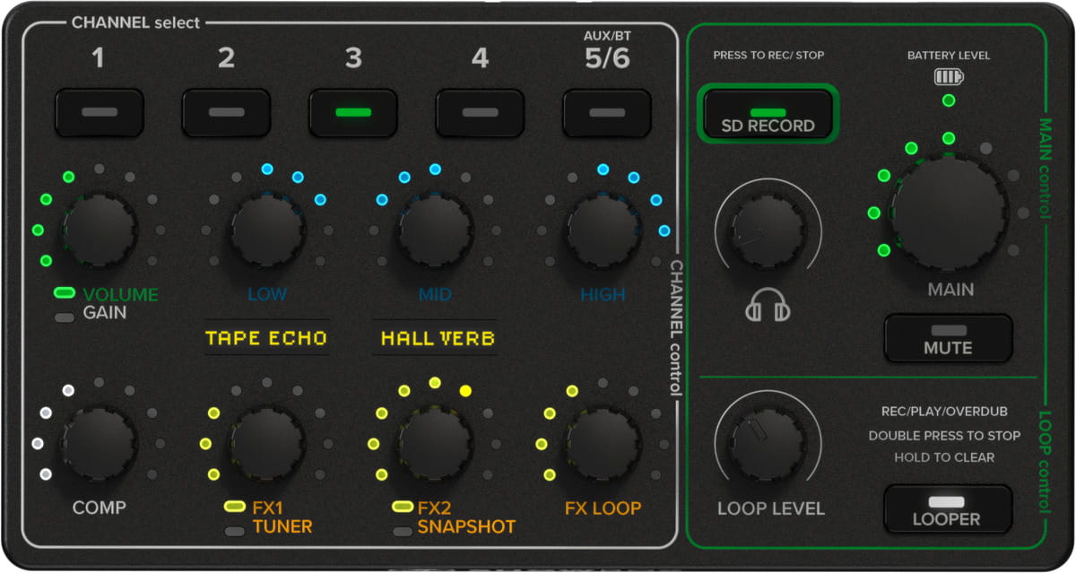 - 6 wejść audio, w tym 2x MIC XLR, 2x Line In Mono oraz 1x Line In Stereo