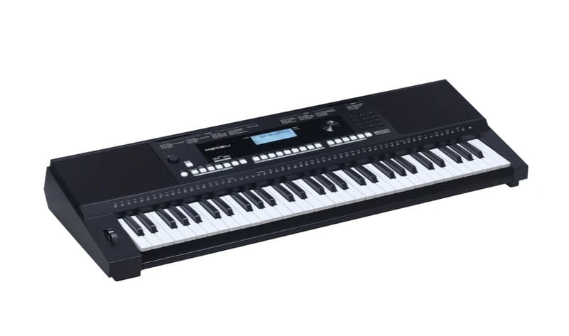 Keyboard Medeli MK 300 posiada: 61-klawiszy (klawiatura dynamiczna z 3 trybami ustawienia czułości). Wyświetlacz: LCD. Polifonia: 128 głosów. Brzmienia: 633. Style: 220. Tryb lekcji z 150 utworami. Utwory demonstracyjne: 8. Nagłośnienie 2x15W. Wejście na opcjonalny pedał sustain. Midi poprzez USB. Wspólne wyjście słuchawkowe i Main Out. Rozbudowany procesor DSP z efektami: Reverb (10 typów) i Chorus (8 typów). Master EQ: 6 presetów. Sequencer: 10 utworów użytkownika (1 melodia + 1 akompaniament). Banki Performance Memory 4x8. Opcje Q.S./OTS (one touch settings), a także funkcje takie jak Transpose, Harmony, Metronom, Octave i skrót do trybu pianina - PIANO MODE. Zasilanie: DC 12V z opcją zasilania bateriami 6xAA. Wymiary: 956 x 360 x 133 mm. Waga: 5.3 kg. Instrument w komplecie posiada: dedykowany zasilacz, pulpit i instrukcję obsługi w języku polskim.