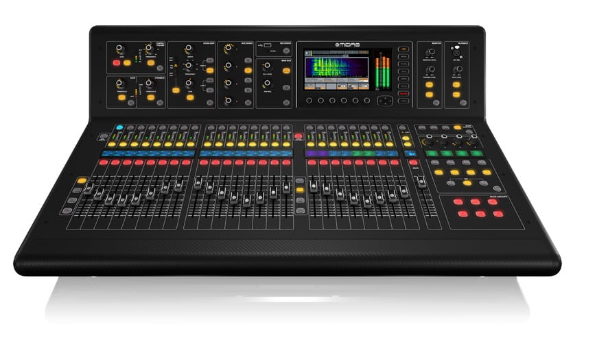 Konsoleta cyfrowa dla nagłośnienia i dla studia, z 40 kanałami wejściowymi, 32 przedwzmacniaczami mikrofonowymi MIDAS i 25 szynami miksującymi.