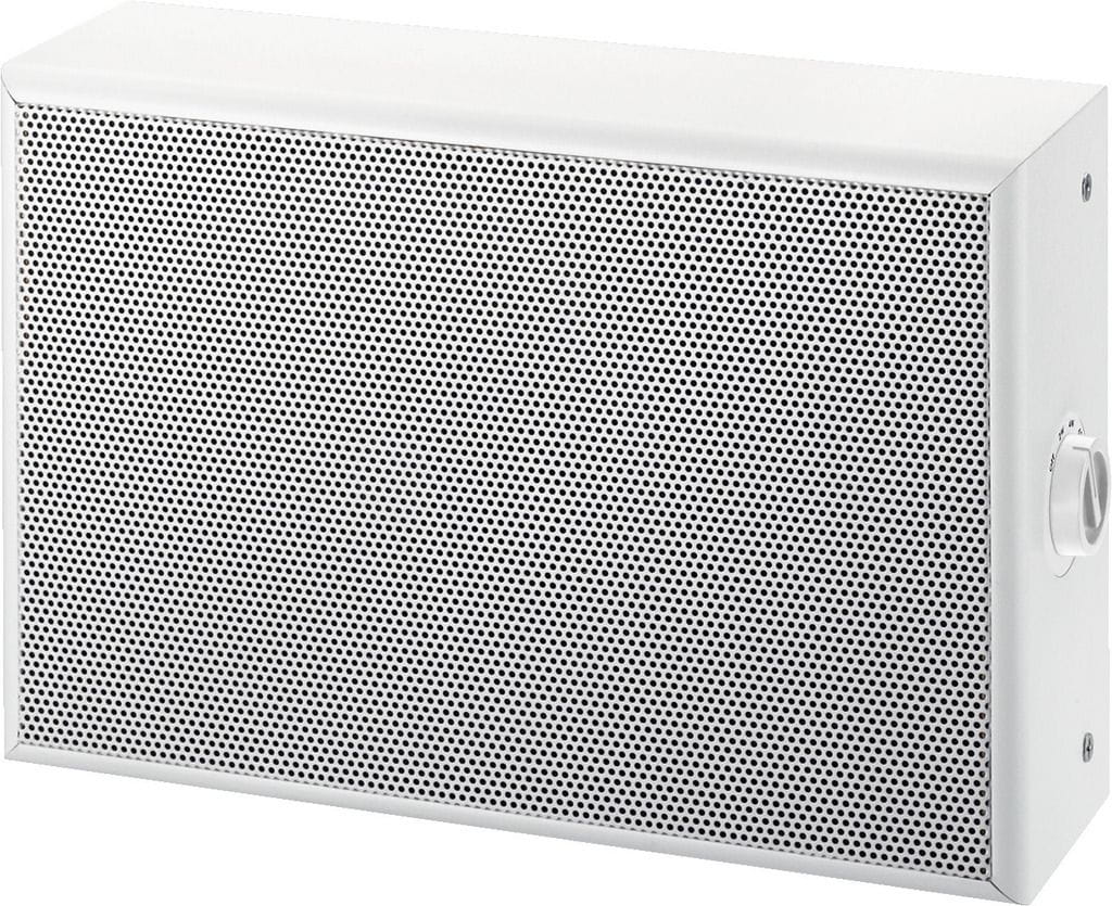 Biała drewniana obudowa z metalową maskownicą