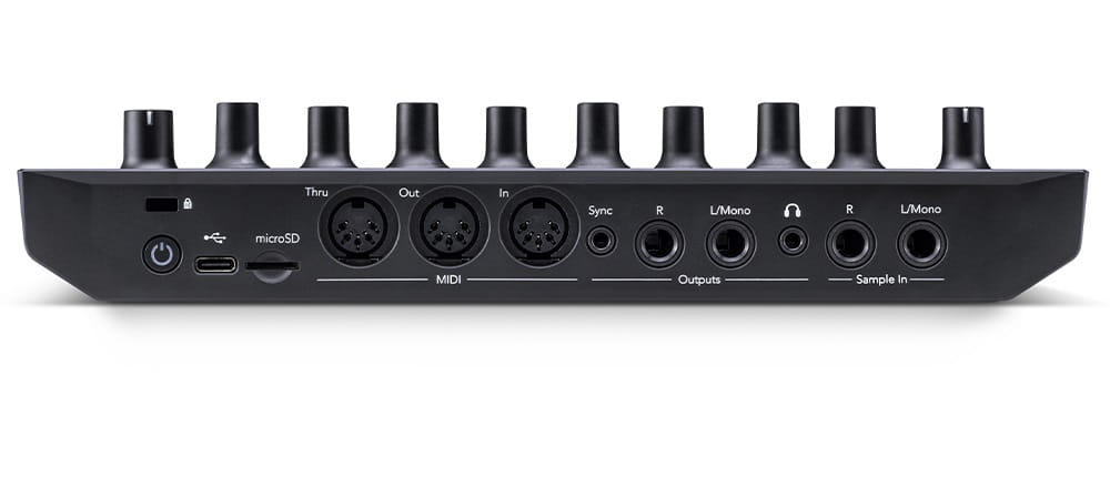 Kompaktowe wymiary, solidna obudowa, wejście na kartę microSD i wbudowana bateria pozwalają zabrać go ze sobą wszędzie. Sprawdzi się w każdej muzycznej sytuacji, którą możesz napotkać. Na koncertach, jak i w studiu. Posiada pełnowymiarowe złącza MIDI in, out, thru i analogowe sync out, oraz możliwość monitorowania na bieżąco poprzez wyjście słuchawkowe i wyjścia audio.