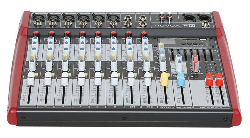Analogowy, wszechstronny mikser, zaprojektowany do profesjonalnych zastosowań audio. Bez względu na to czy planujesz nagłośnienie trasy koncertowej, niewielkiego spotkania lub koncertu klubowego lub też posiadasz firmę nagłośnieniową, Analogowy, wszechstronny mikser, zaprojektowany do profesjonalnych zastosowań audio. Bez względu na to czy planujesz nagłośnienie trasy koncertowej, niewielkiego spotkania lub koncertu klubowego lub też posiadasz firmę nagłośnieniową, NOVOX z serii M jest idealnym rozwiązaniem dla Ciebie! Dzięki przejrzystemu interfejsowi oraz wygodnemu panelowi połączeń, użytkownik jest w stanie zintegrować mikser z dowolnym systemem PA w ciągu kilku minut. Wbudowany procesor efektów, odtwarzacz MP3 USB, system cyfrowej rejestracji sygnału z sumy oraz korektor graficzny to tylko niektóre cechy miksera gotowego do pracy w każdych warunkach.