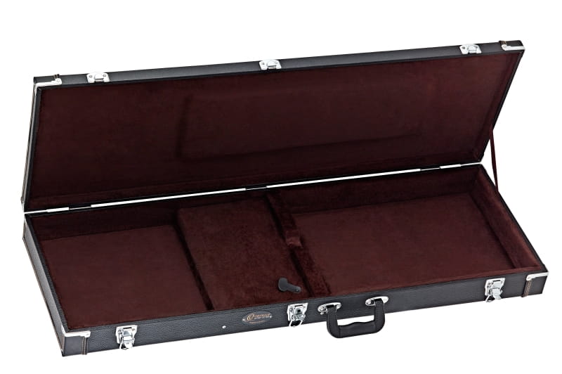 Standardowe w branży futerały na instrumenty z klasycznym czarnym winylowym wykończeniem - przystępne cenowo. Płaski top, wyściółka 15 mm - pokryta aksamitem „kawowym”, przegroda na akcesoria, chromowane okucia i mocny uchwyt wyróżniają te ponadczasowe etui.