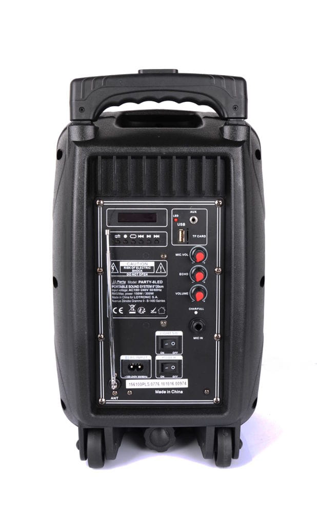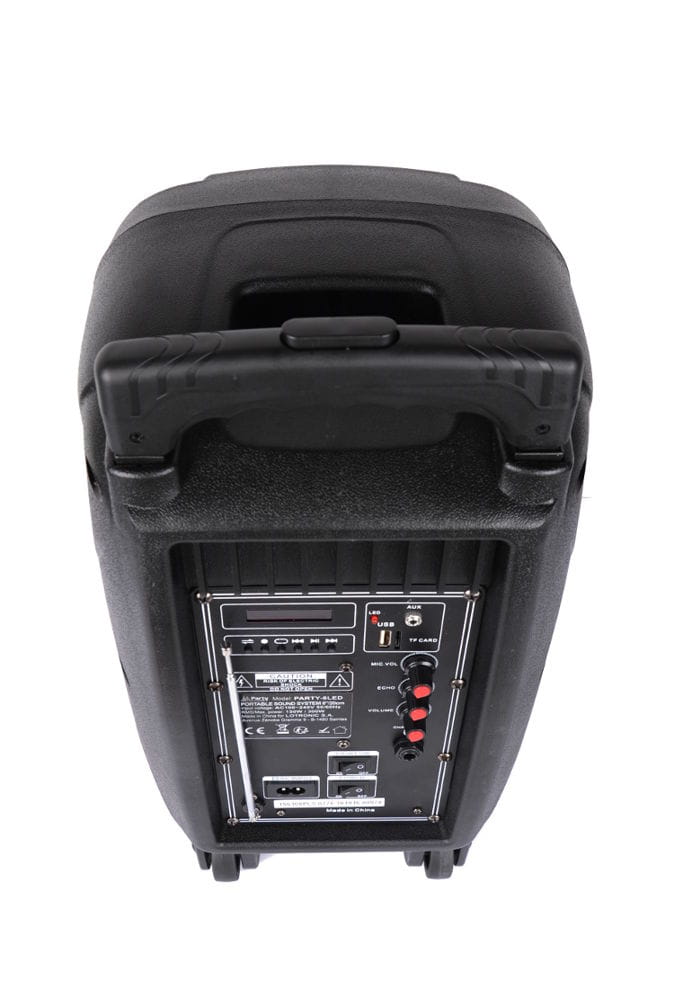 Mobilna kolumna nagłośnieniowa PARTY-8LED marki Party Light&Sound w zestawie z mikrofonem przewodowym to idealne rozwiązanie na imprezy w plenerze. Jedno urządzenie i wiele możliwości ! Kolumna ma wbudowany akumulator 4.4Ah, odtwarzacz USB, Bluetooth, SD i radio. Gotowa do użycia po rozpakowaniu, jest idealnym rozwiązaniem dla podróżujących muzyków, na imprezy karaoke, do barów, na sale animacji, fitness, wykładowe, itp. Wbudowane podświetlenie LED w głośniku, dostarczy dodatkowo efektów wizualnych na naszym evencie, a kółka i wysuwany uchwyt ułatwią transport. Oświetlenie można też wyłączyć i korzystać tylko z nagłośnienia. Kolumna jest lekka, można zabrać ją praktycznie wszędzie. A dla tych, którzy imprezują bardziej stacjonarnie została wyposażona w otwór na spodzie może więc stać na standardowym statywie kolumnowym
