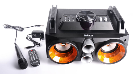 Boombox zaprojektowany w "kosmicznym" stylu i o mocy aż 200W. Wyposażony został w różne możliwości przesyłania dźwięku - z pendrive'a przez USB, karty SD czy poprzez odbiornik Bluetooth. Posiada również wbudowane radio oraz dwa wejścia mikrofonowe. Wraz z nim otrzymujemy mikrofon przewodowy oraz pilota. A co najważniejsze - boombox został wyposażony w akumulator, możemy więc w prosty sposób zorganizować imprezę w plenerze, Karaoke przy ognisku czy garden party. Podświetlenie głośników niskotonowych zapewni niezwykły nastrój.