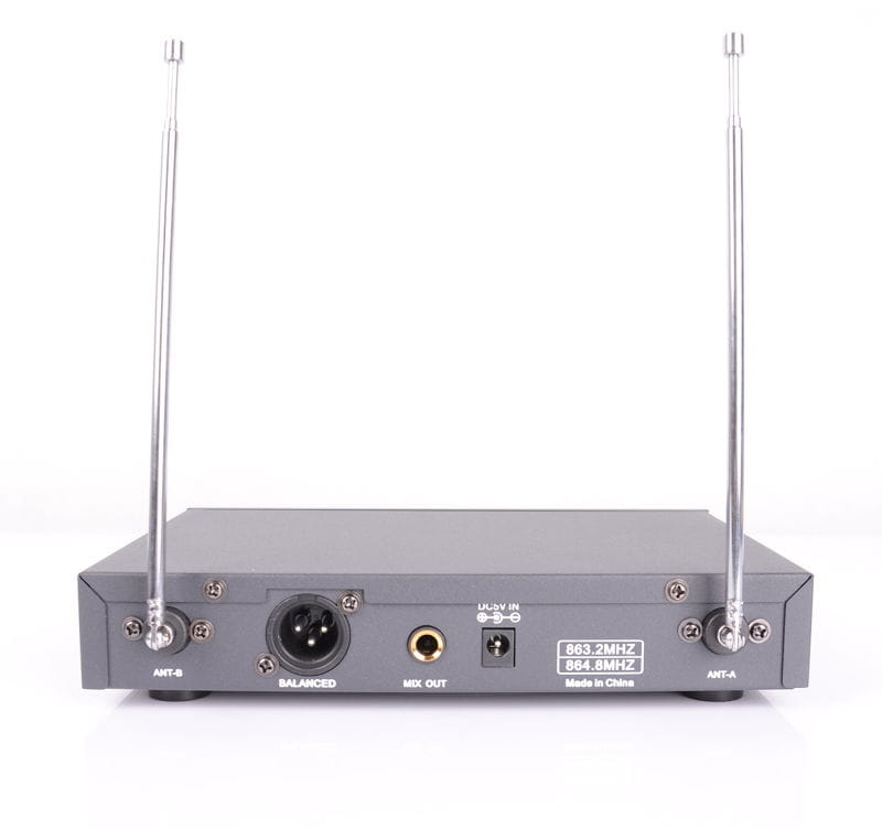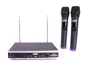 Zestaw mikrofonów WM-20UHF marki Party Light&Sound to profesjonalne rozwiązanie bezprzewodowego nagłośnienia. Do dyspozycji mamy dwa mikrofony doręczne UHF, bazę - odbiornik z zasilaczem oraz kabel z dwiema końcówkami Jack 6,35mm, dzięki któremu możemy podłączyć całość do urządzeń posiadających wejście mikrofonowe: miksera, wzmacniacza, kolumny itp. Do kabla otrzymujemy również przejściówkę na mały Jack mamy więc możliwość podłączyć całość do komputera do wejścia mikrofonowego. Mikrofony mogą działać jednocześnie, wystarczy ustawić je w różnych częstotliwościach. Odbiornik współpracuje z nimi nawet do 30m. Zastosowana najnowsza technologia niweluje szumy i zakłócenia. Mikrofony zasilane są dwiema bateriami AA i informują użytkownika poprzez czerwone światełko w obudowie o rozładowaniu.