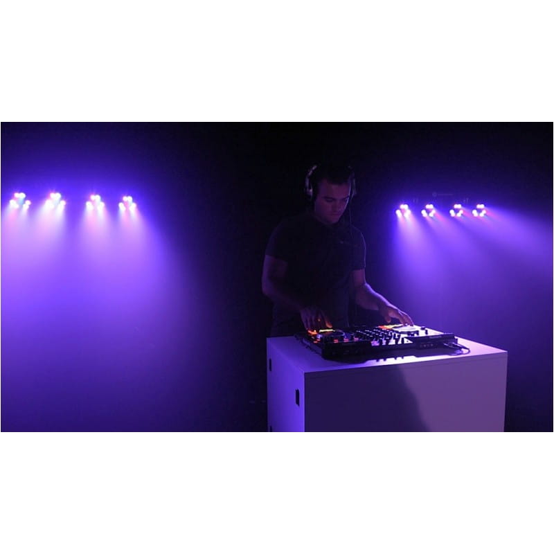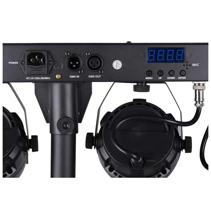 LIGHT4ME BELKA LED PAR to kompletny zestaw owietleniowy, w skład którego wchodzą listwa mocująca, cztery reflektory LED PAR wyposażone w 12 jednowatowych diod LED pracujących w palecie kolorów RGBW red, green, blue, white, solidny statyw, pilot oraz dwa pokrowce na statyw i belkę.Pracę zestawu można kontrolować używając pilota lub umieszczonego na tylnej części obudowy belki panelu sterowania. W jego skład wchodzą cztery przyciski Menu, Up, Down, Enter oraz wyświetlacz LED. Do wyboru mamy tryb pracy automatyczny, tryb pracy w zgodzie z dźwiękiem, a także sterowniki DMX, dzięki którym możemy zarządzać pracą zestawu wykorzystując zewnętrzne panele i konsolety.Belka LED PAR znakomicie sprawdza się jako oświetlenie sceniczne małych i średnich salach bankietowych, w pracy mobilnych DJów i zespołów muzycznych, a dzięki swoim małym rozmiary jest również wygodna w użytkowaniu i transporcie. Specyfikacja technicznaŹródło światła 4 reflektory typu par 12x1W RGBWZasilanie AC 100240V, 5060HzZużycie energii 60WBezpiecznik 3ATryby pracy auto, sound, DMX, masterslave, sterowanie pilotemTemperatura pracy 10C 40CPołączenia DMX, 3pin XLRWymiary bez statywu 660 x 150 x 80 mmWaga 5,5 kgOryginalne opakowanie i wypełnienie.