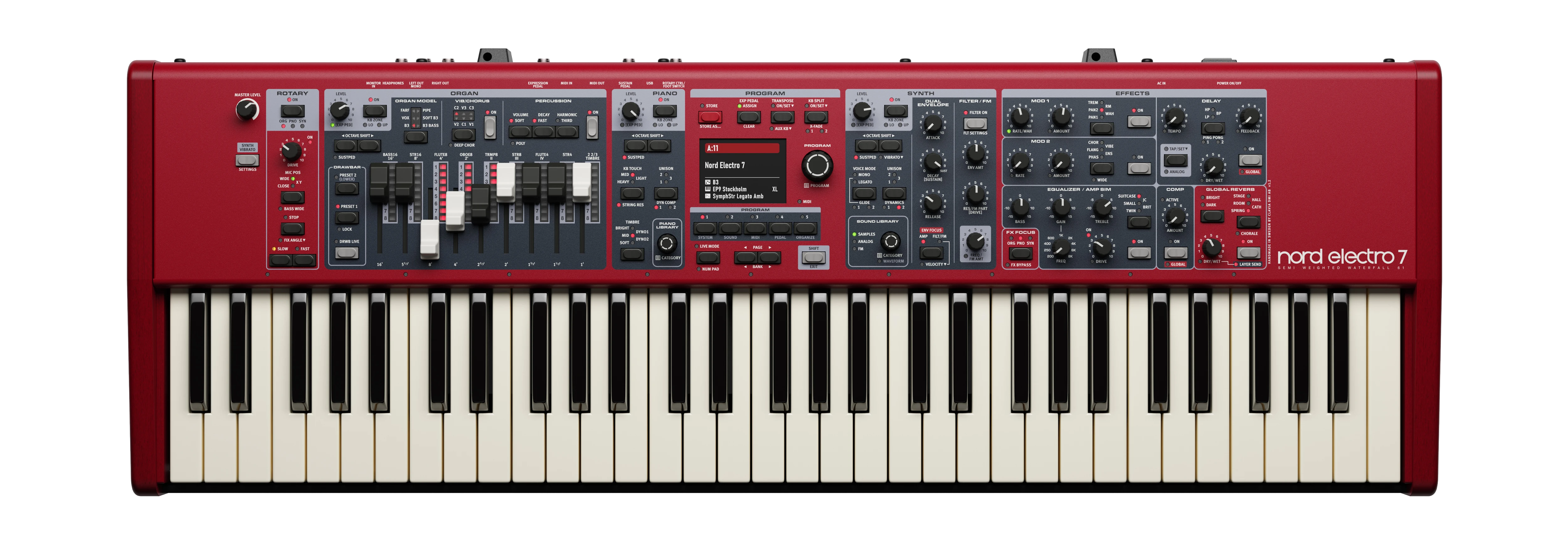 Nord Electro 7 to najnowsza odsłona uznanej serii kompaktowych instrumentów scenicznych, która łączy klasyczne brzmienia organów, fortepianów i sampli z nowoczesną technologią i wyjątkową mobilnością. Nowa generacja przynosi szereg ulepszeń — w tym zupełnie nową sekcję syntezatora, dedykowane efekty dla każdej sekcji z osobna oraz przeprojektowany panel z dużym, kolorowym wyświetlaczem o wysokiej rozdzielczości, który znacząco podnosi komfort pracy na scenie.
