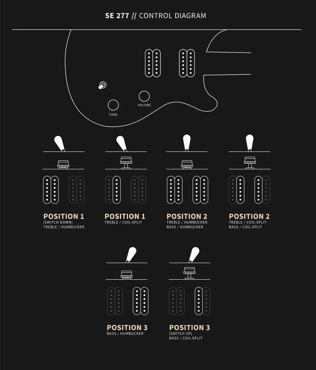 - Regulacja: Głośność, Ton (Push/Pull), 3 pozycyjny przełącznik Toggle