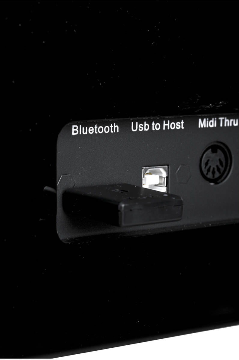 Bluetooth i interfejs: Pianino jest gotowe do połączenia przez Bluetooth, co umożliwia bezprzewodowe przesyłanie dźwięku. Dodatkowo, wbudowany interfejs audio umożliwia liczne opcje połączeń (L/R Outputs, USB to Host, Midi In/Out/Thru) zapewniają wszechstronność i łatwość integracji z innymi urządzeniami muzycznymi.