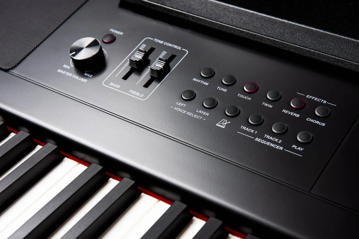 - Kontrola: Volume, Twin, Layer, Left, Touch, Transpose, Pitch, Metronom, Bass, Treble