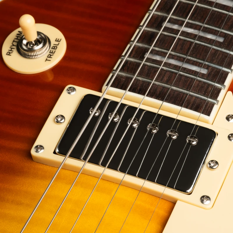 Korpus z lekkiego okoumé i płyta wierzchnia z klonu płomienistego, wykończona w kolorze Honey Burst, sprawiają, że LP300 prezentuje się równie dobrze, jak brzmi. Ceramiczne przetworniki typu HH oferują pełne, dynamiczne brzmienie z szerokim pasmem tonalnym – od ciepłych czystych dźwięków po agresywny overdrive.