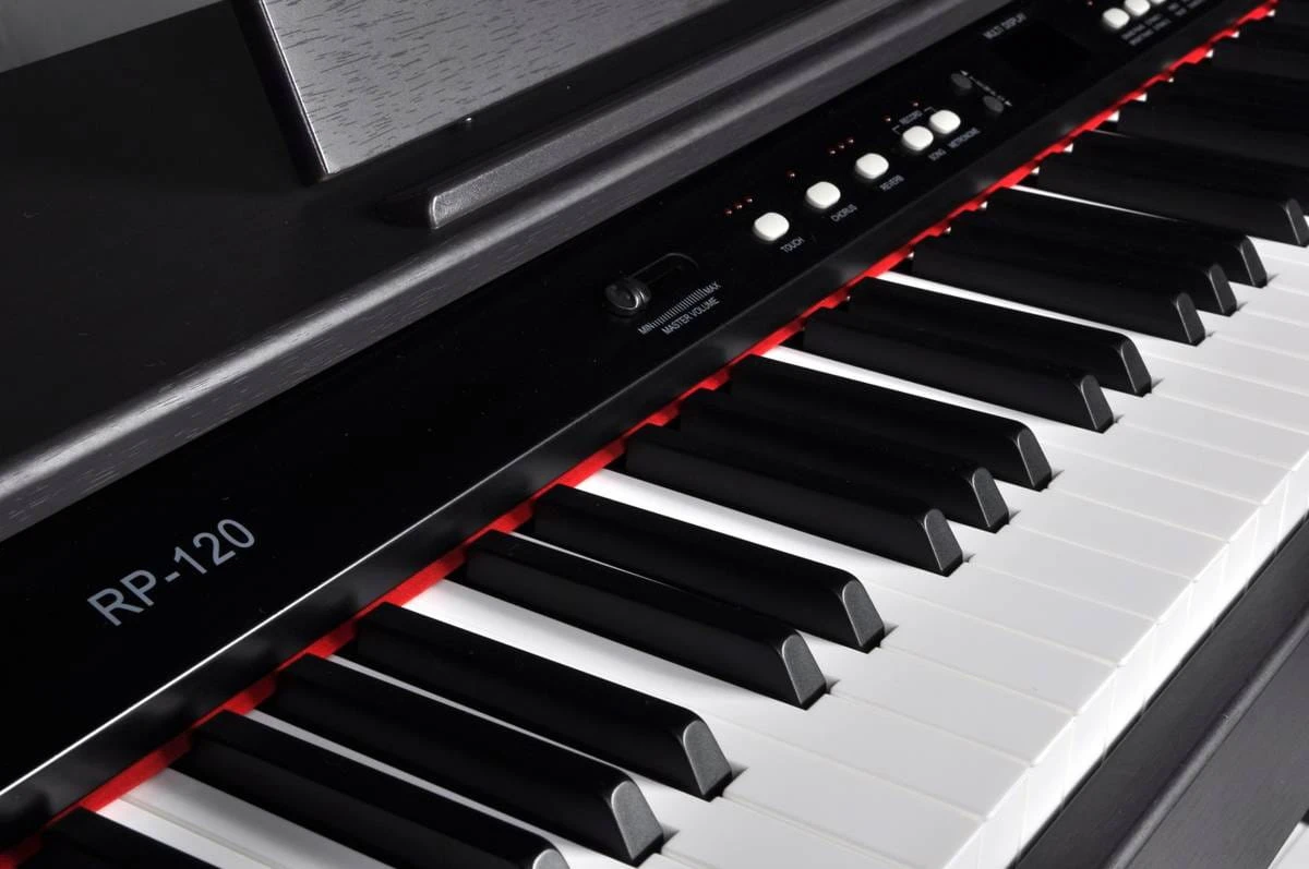 Klawiatura Ringway RP120 instrumentu składa się z 88 klawiszy, co umożliwia zróżnicowane i precyzyjne granie. Dodatkową zaletą jest możliwość dostosowania czułości klawiatury według własnych preferencji, co pozwala na pełną kontrolę nad brzmieniem.