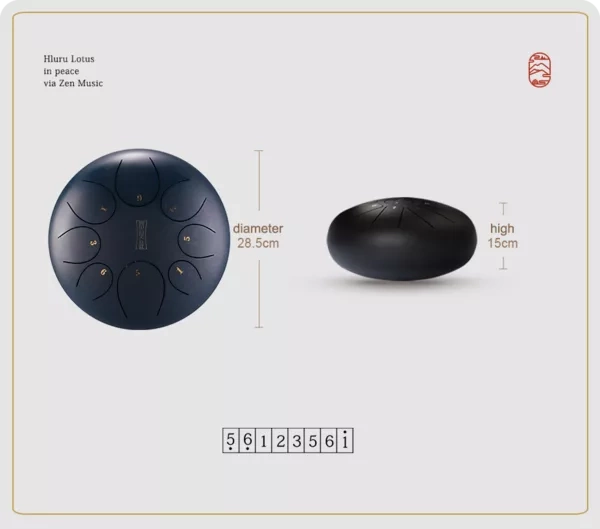 Round tongue drum 12" 8 ton Hluru TY8-12-Charcoal