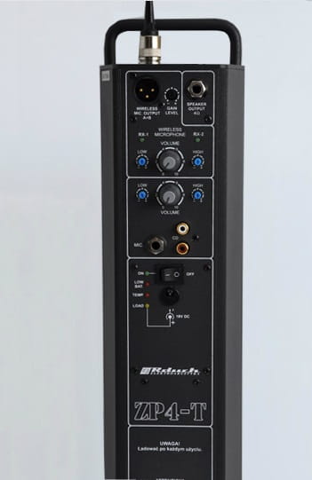 Zestaw przeznaczony jest do nagłaśniania procesji, pielgrzymek, itp. Zawiera radiowy komplet nadawczo-odbiorczy, mikrofon bezprzewodowy. Zasilany jest z wewnętrznego żelowego akumulatora 12V. Posiada wbudowany układ sygnalizacji stanu akumulatora. Ma zainstalowane gniazda do podłączenia: mikrofonu, dodatkowych głośników typu megafony, zasilacza do ładowania (zasilacz w zestawie). Posiada regulację głośności mikrofonu zdalnego i przewodowego oraz sygnalizacje włączenia nadajnika. Wyposażony jest w regulowane symetryczne wyjście z odbiornika mikrofonu bezprzewodowego (jeden lub dwa Mikrofony bezprzewodowe), służące do wykorzystania zestawu ZP4-T jako odbiornika z tych mikrofonów bezprzewodowych do stacjonarnego nagłośnienia.