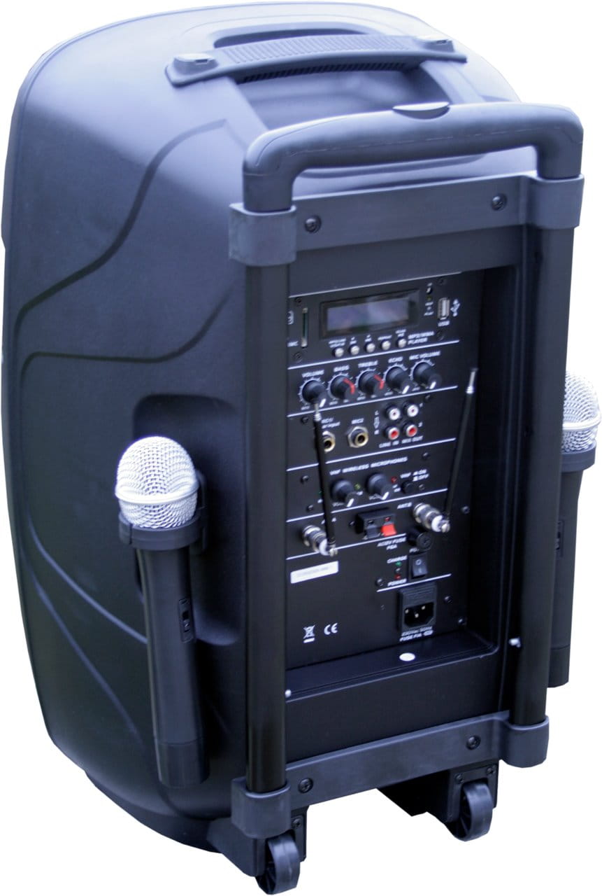 Aktywny dwudrożny, przenośny system nagłośnieniowy PA z wbudowanym akumulatorem oraz podwójnym mikrofonem bezprzewodowym. Wbudowany odtwarzacz MP3, USB / SD oraz tuner FM. Zestaw nadaje się do zastosowań mobilnych. Głośnik niskotonowy o średnicy 12 " oraz 1,5" głośnik wysokotonowy z wbudowanym wzmacniaczem o mocy 30W zapewnią wysoką wydajność w wielu zastosowaniach.