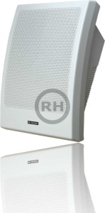 Głośnik naścienny z tworzywa sztucznego w kolorze białym.