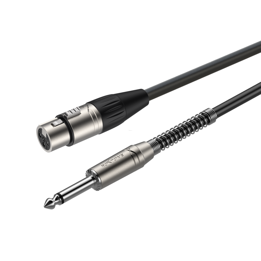 Prefabrykowany kabel mikrofonowy o wysokiej wydajności ze złączami ROXTONE: 1 x jack mono RJ2P-NN i 1 x gniazdo XLR RX3FP-NT. Wtyczki: 1 x 6.3mm mono wtyczka - 1 x XLR gniazdo 3 pinowy. Długość: 1m.