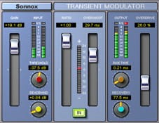 Tego typu efekty można w łatwy sposób uzyskać za pomocą wtyczki Transient Modulator, która działa tylko na krótkie, dynamicznie zmienne elementy przetwarzanego programu, a cały materiał audio pozostaje niemalże nietknięty.